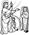 out!" 44 The dead man came out, his hands and feet wrapped with strips